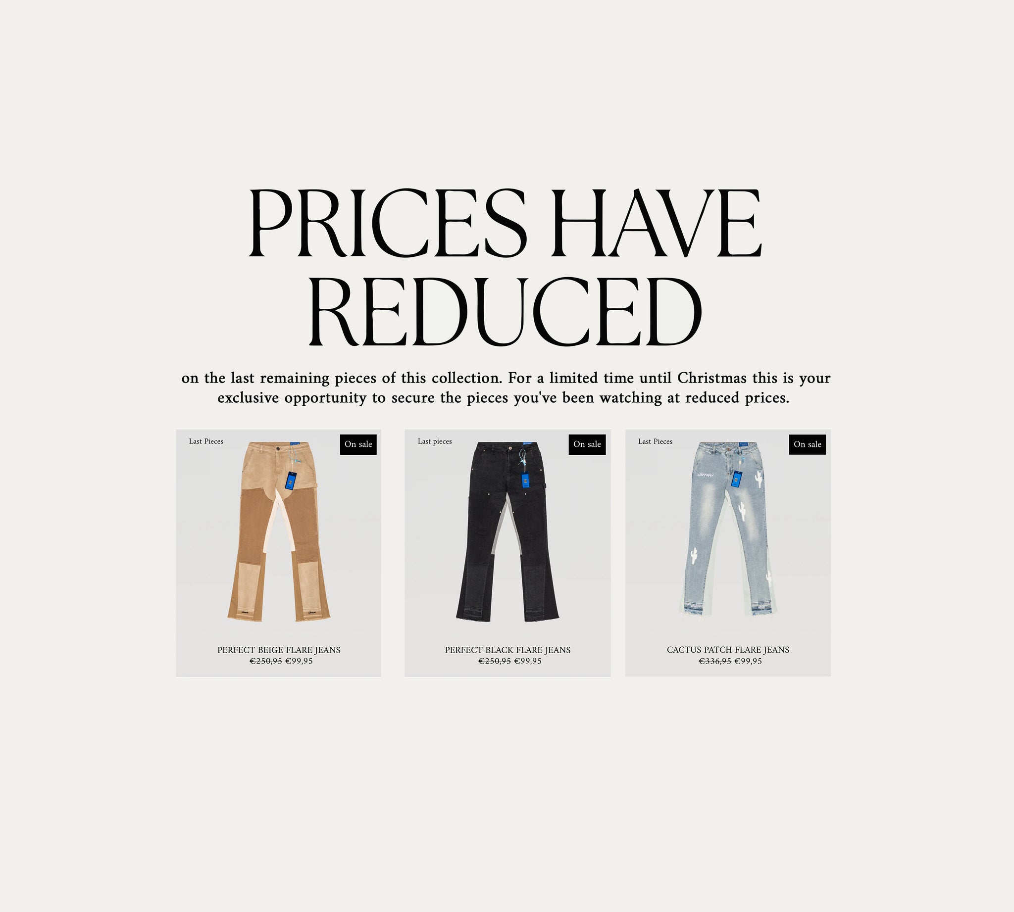 Prices have dropped on the last remaining pieces of this collection. For a limited time until Christmas this is your exclusive opportunity to secure the pieces you've been watching at reduced prices.